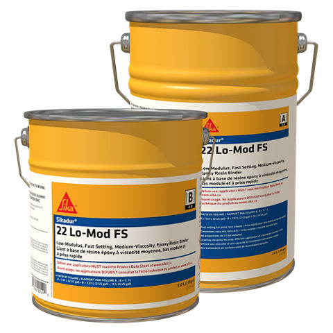 Sikadur®-22 Lo-Mod FS is a two-component, 100% solids, moisture-tolerant, fast setting epoxy resin binder. It conforms to the current ASTM C881 and AASHTO M 235 specifications.