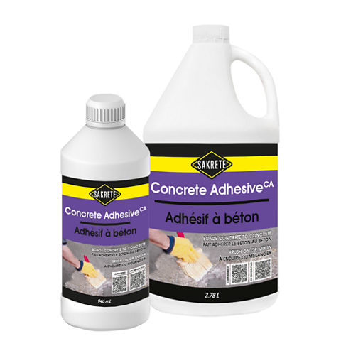 SAKRETE Concrete Adhesive is a high performance, latexemulsion adhesive designed for use as a bonding agent between new and existing concrete and masonry surfaces. Either brush on to existing surface or mix into fresh material.