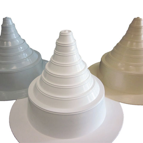 Les Sarnastacks sont des cônes de finition avec embase, préfabriqués et membranés qui vont permettre aux équipes de pose d’économiser du temps pour ponter les cheminées de ventilation et autres conduites en sortie de toit. Les cônes sont thermosoudés en place et coupés en haut de la pénétration, pour terminer le pontage de la conduite